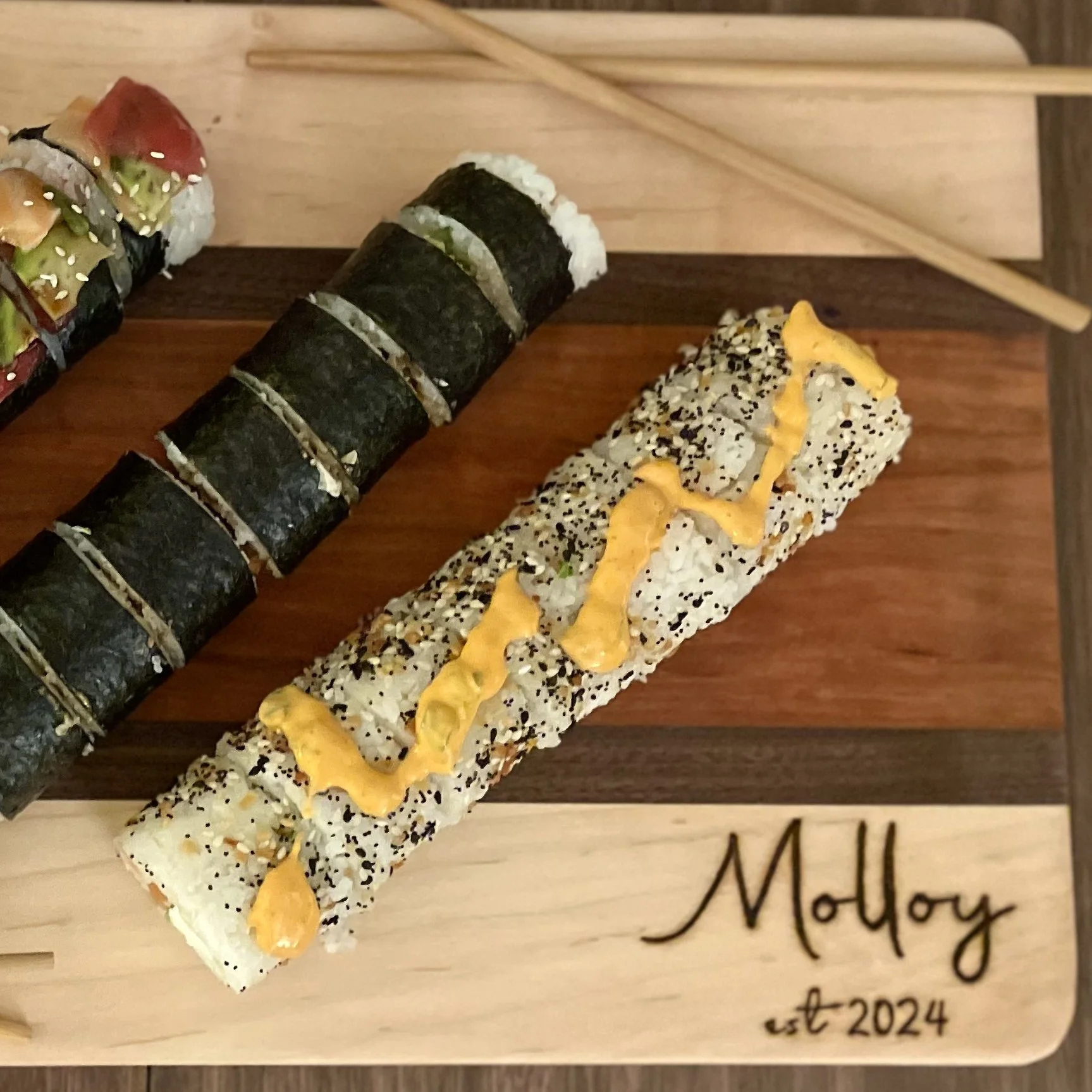 Our beautiful line of charcuterie boards makes entertaining easy. We offer a wide variety of sizes and wood combinations. Want to make your board reflect your personality? Add a custom wood burn.